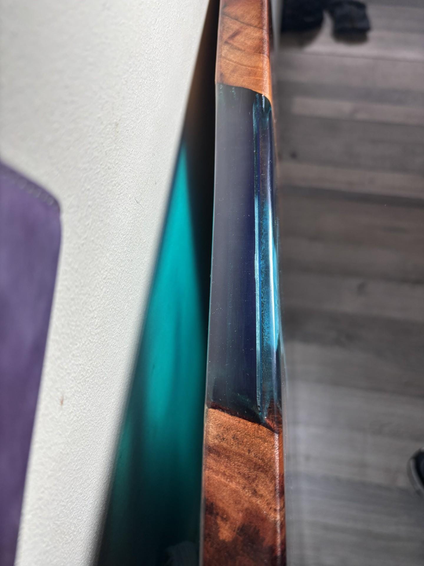 Ideal as a statement coffee table, dramatic desk, or unforgettable display piece, this artisan-crafted slab offers both elegance and resilience. Premium epoxy resin gives a high-gloss, glass-like finish that is water-resistant and simple to maintain, making it perfect for daily use in homes, offices, or boutique spaces.